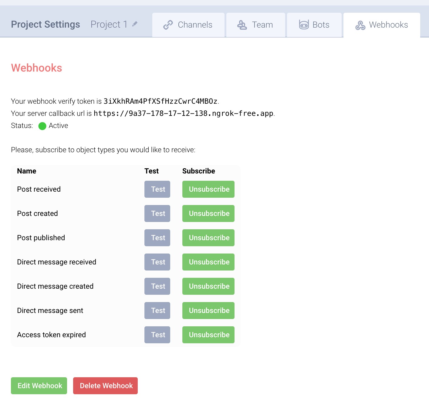 Webhooks are a way to receive real-time notifications from Jollor. When an event occurs in Jollor, we'll call your endpoint with a POST request. You can use webhooks to trigger events in your own tool or to integrate with external services. You can create webhooks for a project in the Jollor Dashboard. The webhooks are project-specific, so you can have different webhooks for different projects. The webhooks are triggered by events in the project, such as new messages, new comments, new posts, etc. You can also specify the events that should trigger the webhook.